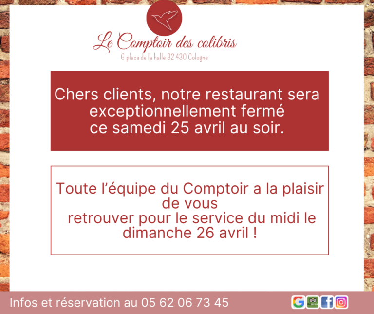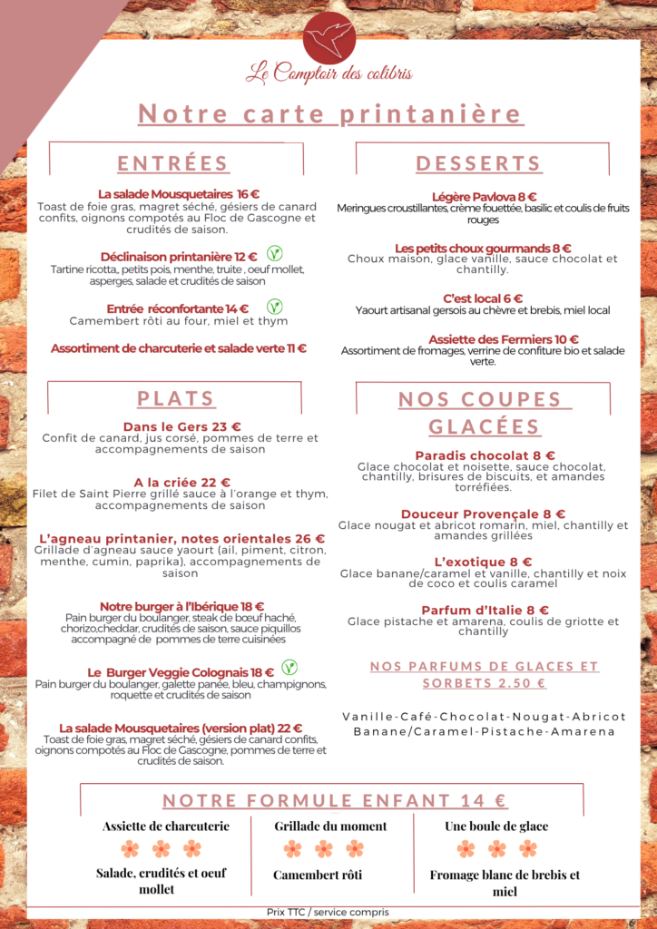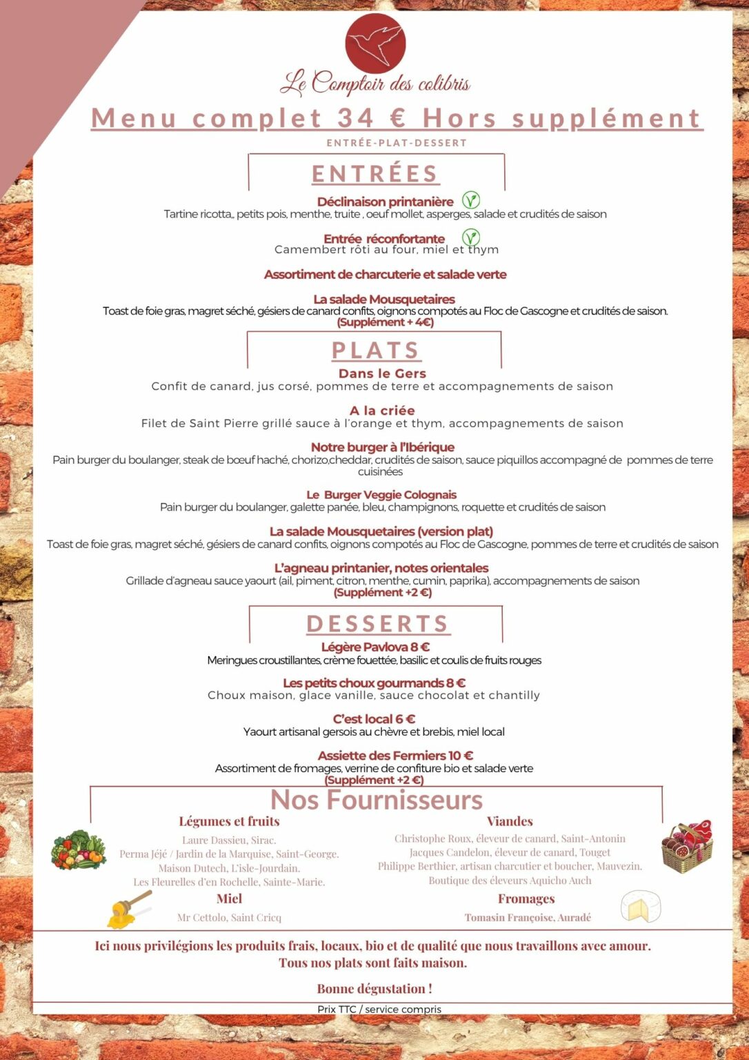 Le menu du jour à retrouver sur notre Facebook chaque jour :