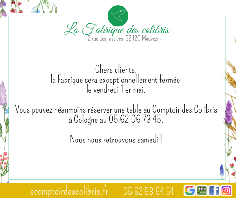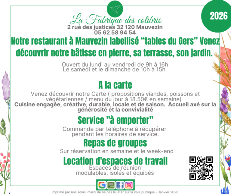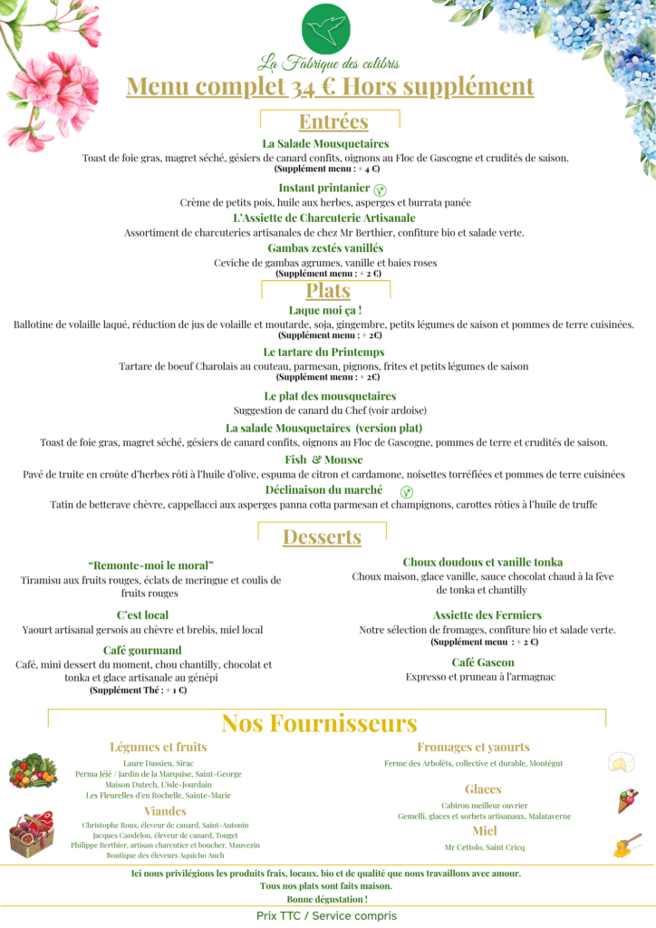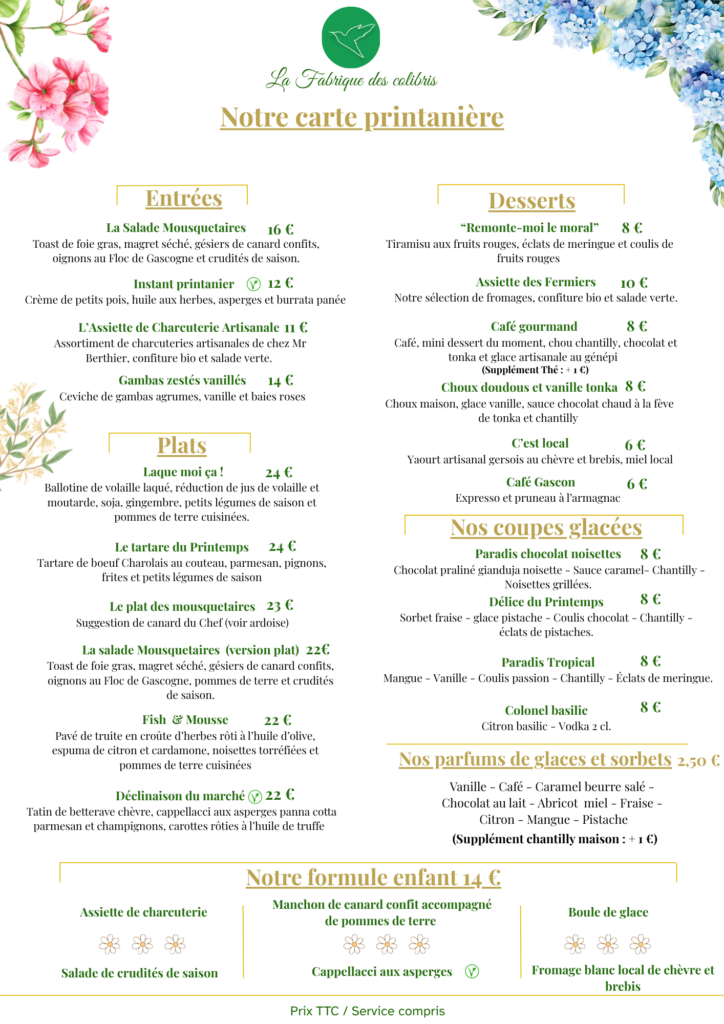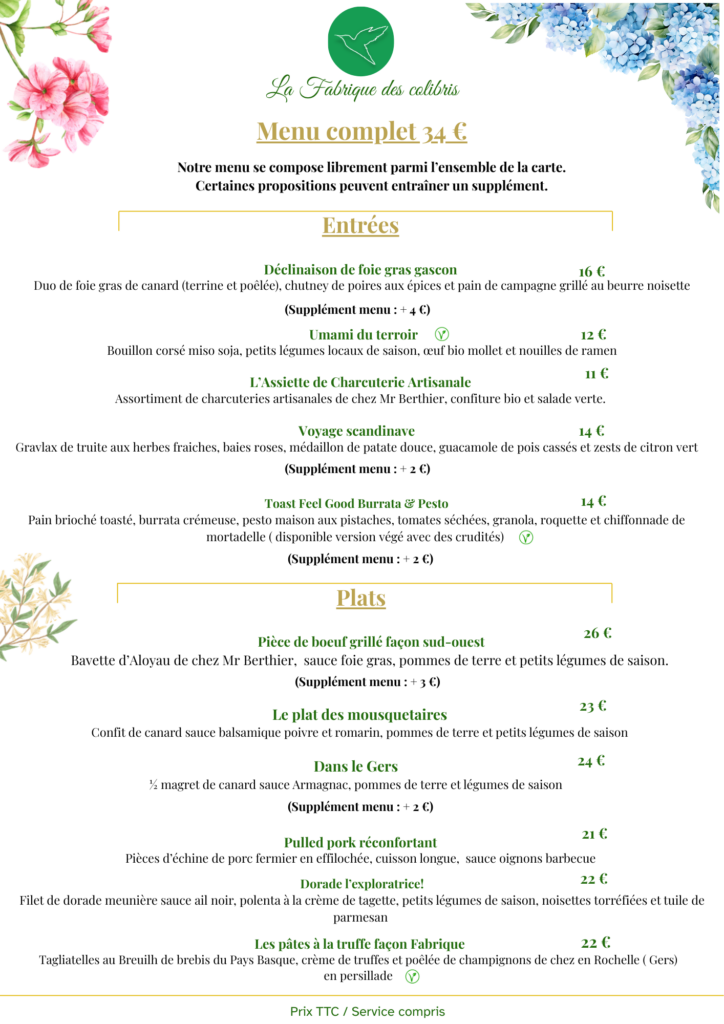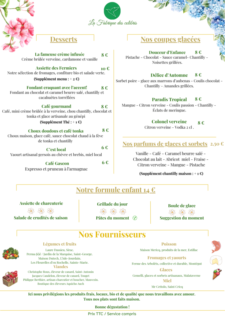 La Fabrique des Colibris – Carte restaurant